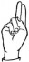 На ћирилици написано АНТОНИНА КОСОВАЦ састоји се из 15 слова [?]. Исписано ћириличном једноручном азбуком за глувонеме: